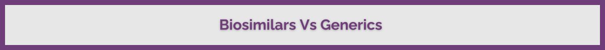 There are a few similarities and a few differences between biosimilars and generic drugs. A generic drug is an exact copy of its reference biological and has the same chemical composition. Whereas, a biosimilar is very similar to the reference drug but not an exact copy.